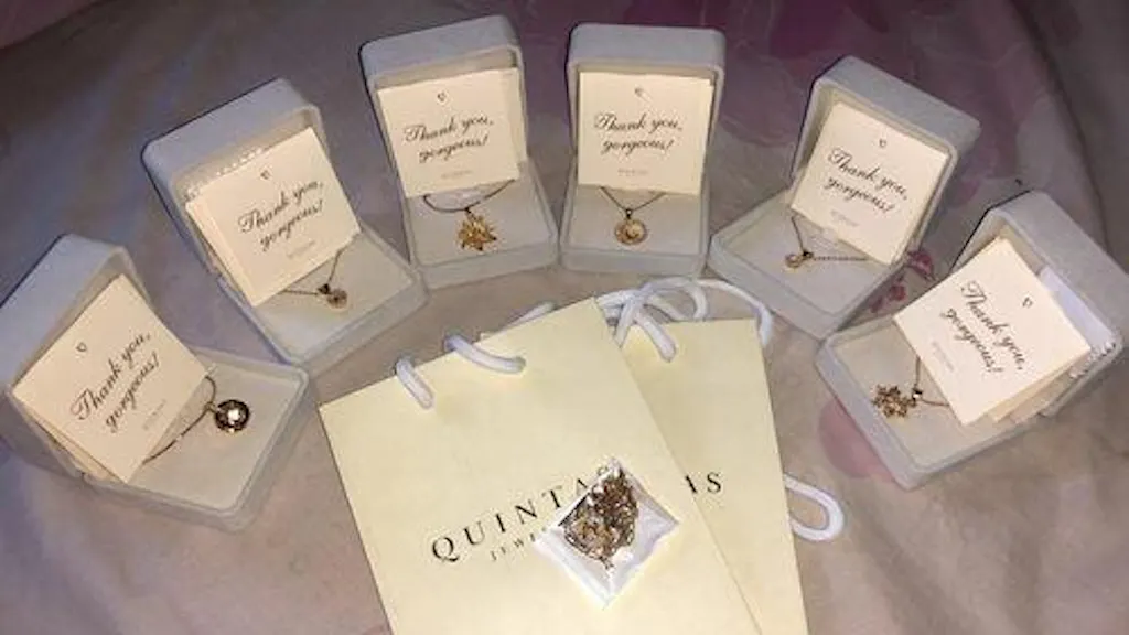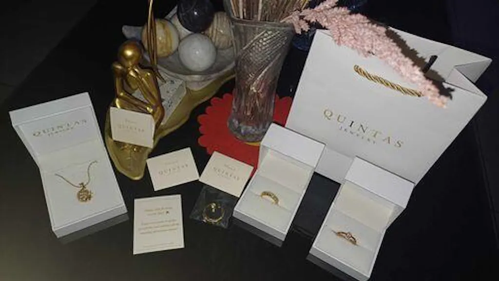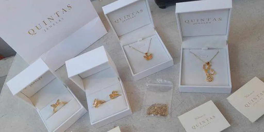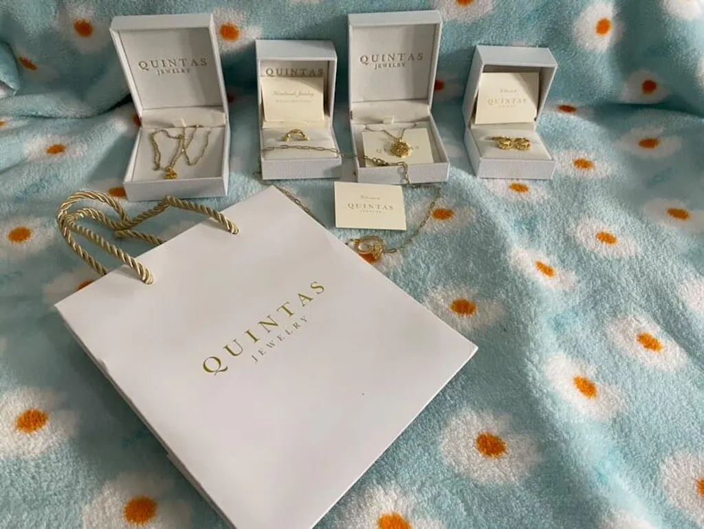 - Gold-stamped with the QUINTAS Jewelry logo on the front and sides
